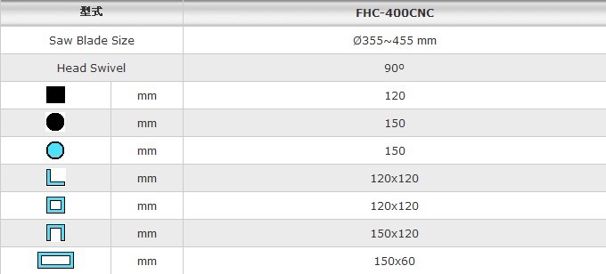 眾合鑫JT-400CNC鋁合金型材切割機鋸切范圍:
